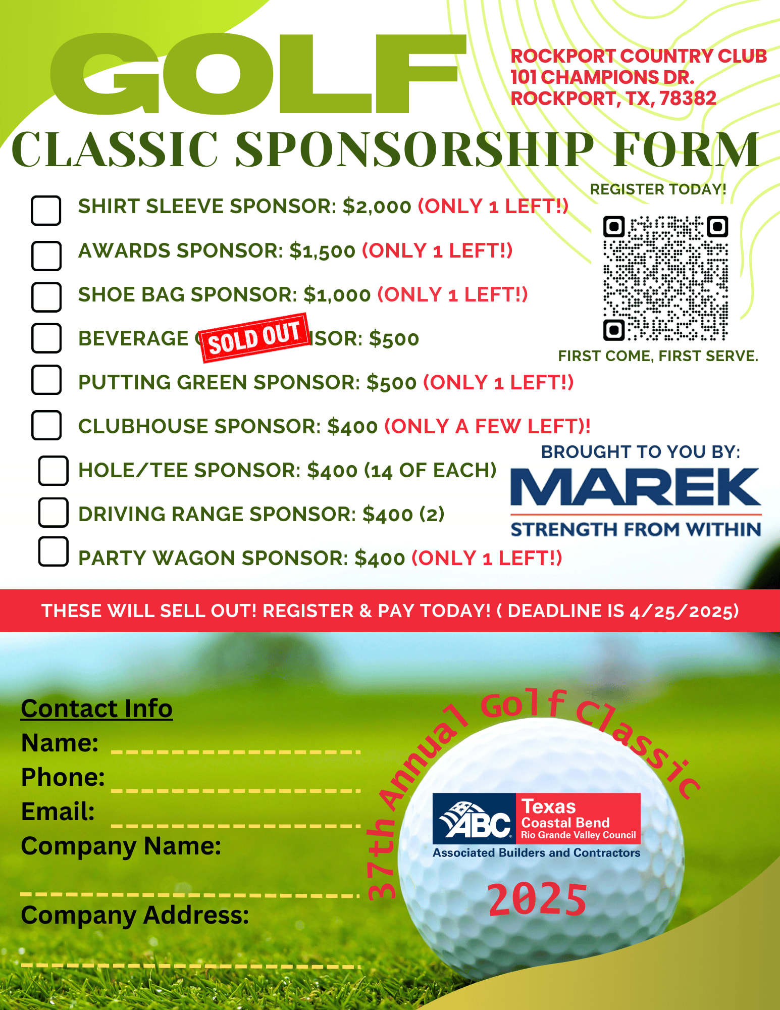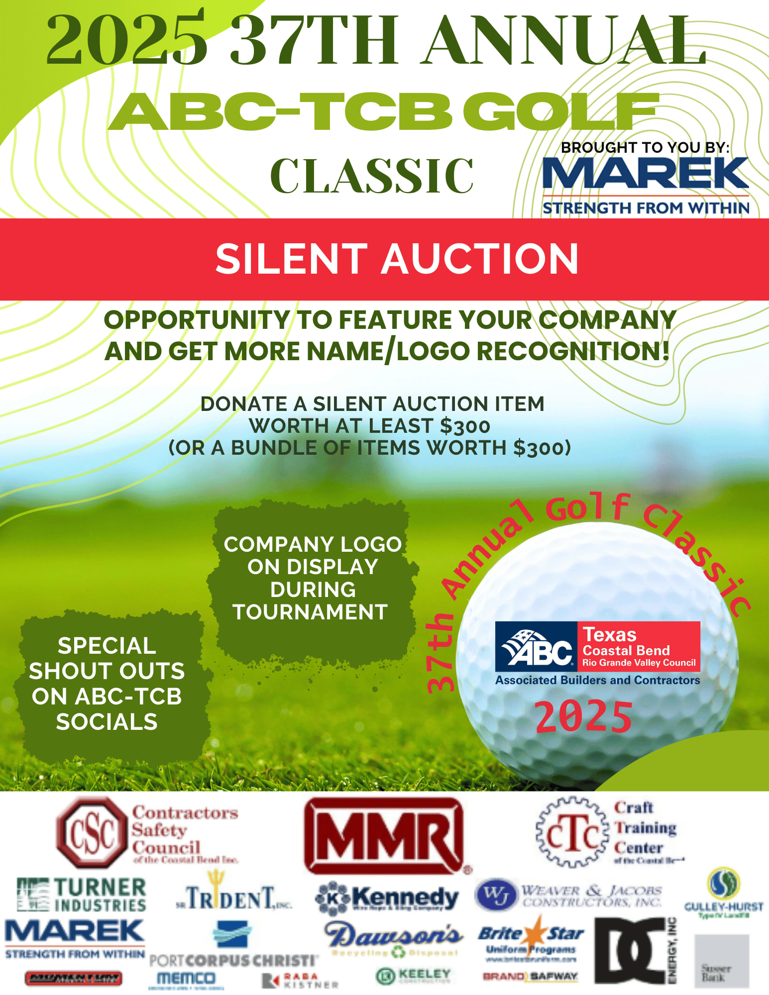Join us for the ABC Golf Classic for an excellent opportunity to feature your company, network, enjoy tasty food & beverages, win amazing prizes & of course play golf at Rockport Country Club!!